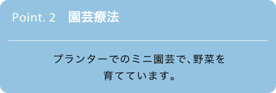 ● 健康管理・個別ケア日々の健康管理をし、アセスメントに基づいたケアをいたします。おひとりお一人のニーズに合わせたケアを実施いたします。